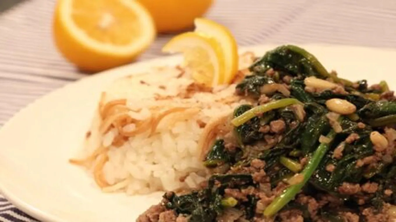 - نقدّم بجانب السبانخ الأرز المفلفل.