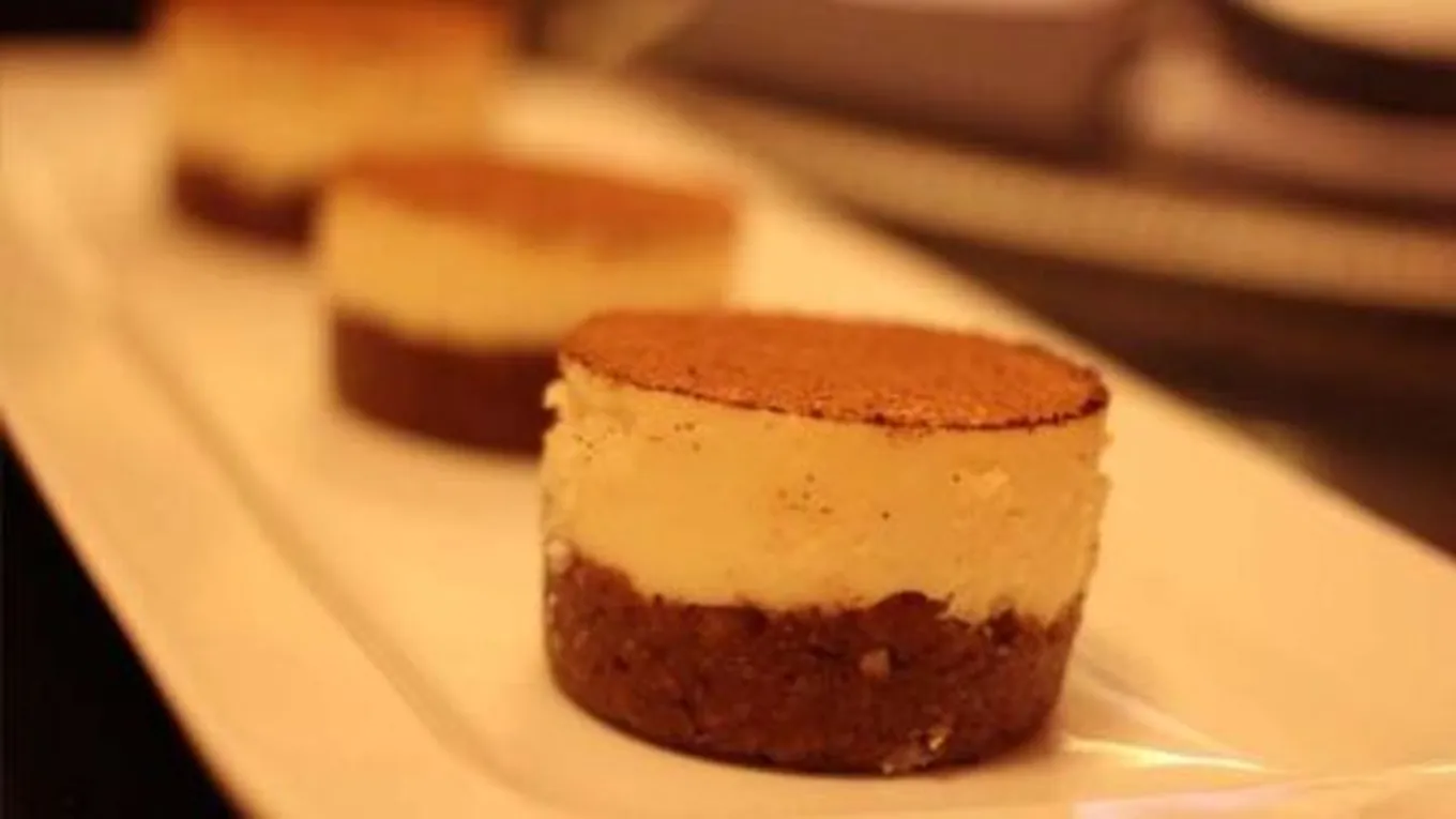 - نضع الزّبدة المُذابة مع البسكويت، وملعقة صغيرة من الكاكاو في المِطحنة الكهربائيّة حتى يتشكّل لدينا خليط ناعم، ثمّ نضعه في صينيّة الحلويّات مع رصّ القاع جيّداً.