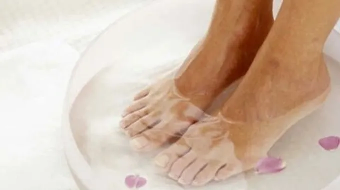 - وضع القدمين لمُدَّة 30 دقيقة في الوعاء مرَّتين يوميّاً.