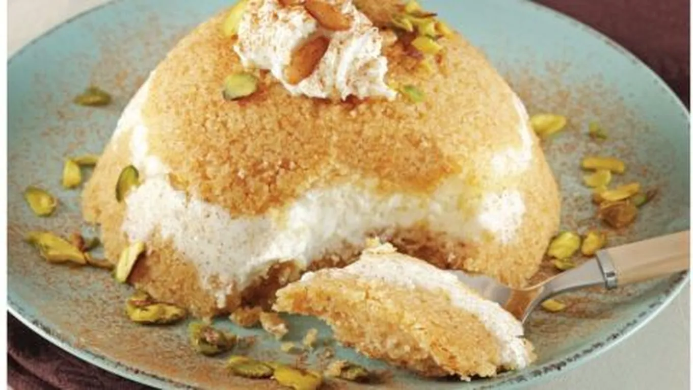 - زيني حلى بين نارين بالفستق الحلبي المجروش، ثمّ أدخليها إلى الثلاجة مدّة ساعتين حتّى تتماسك.