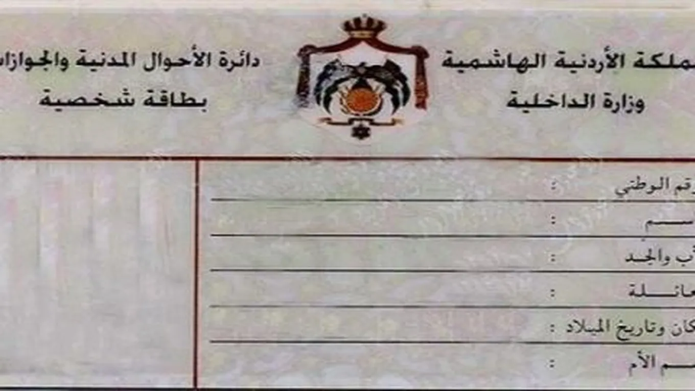 تعد الهوية أو البطاقة الشخصية مستند رسمي في الأردن، و تضم العديد من التفاصيل الشخصية الخاصة بحاملها مثل: الاسم الشخصي، والرقم الوطني، واسم الوالدين، وتاريخ ومكان الولادة، والديانة، وصورة شخصية، والجنس، وتاريخ الانتهاء والإصدار، ومكان الإقامة، ومكتب الإصدار، ومنطقة الدائرة الانتخابية، ورقم ومكان القيد، ويتم إصدار هذه البطاقة من قبل وزارة الداخلية المتواجدة في الأردن، في حين تمنح دائرة الأحوال المدنية والجوازات بطاقة الهوية لكل فرد أردني أو مواطن بلغ السنة الأولى من عمره.