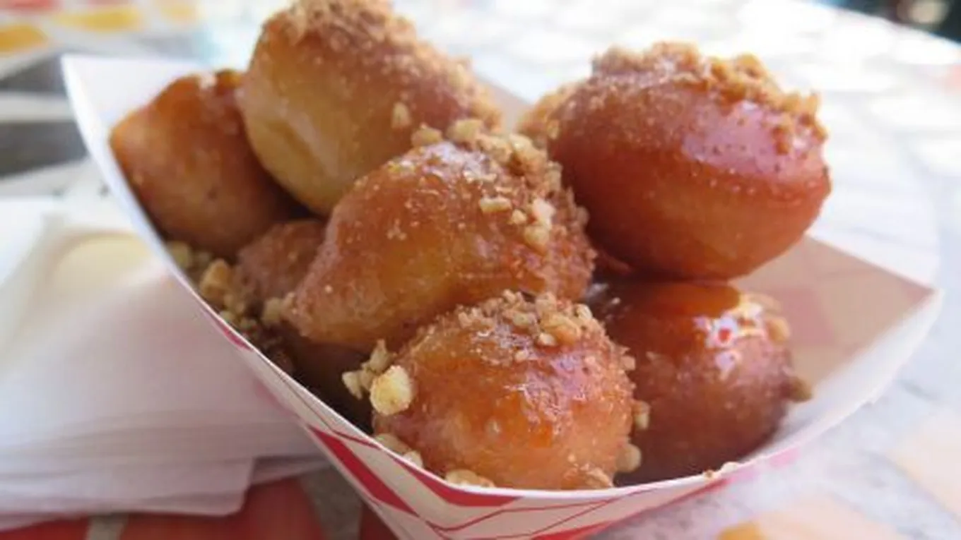 - مسك الملعقة بواسطة اليدك اليمنى ووضعها فوق الزيت في المقلاة مع ترك مسافة جيدة ثمّ سكب العجينة برفق فوق الملعقة حتى تنزل على شكل كرات صغيرة الحجم بواسطة الثقوب في الزيت (مع مراعاة عدم ملئ المقلاة كثيراً في كرات العجينة).