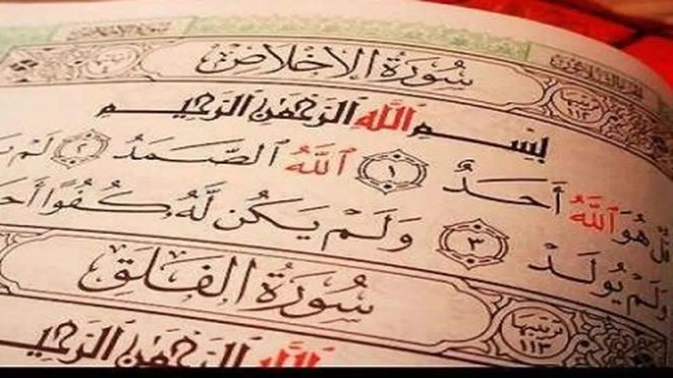 قُلْ هُوَ اللَّهُ أَحَدٌ (1) اللَّهُ الصَّمَدُ (2) لَمْ يَلِدْ وَلَمْ يُولَدْ (3) وَلَمْ يَكُن لَّهُ كُفُوًا أَحَدٌ (4)