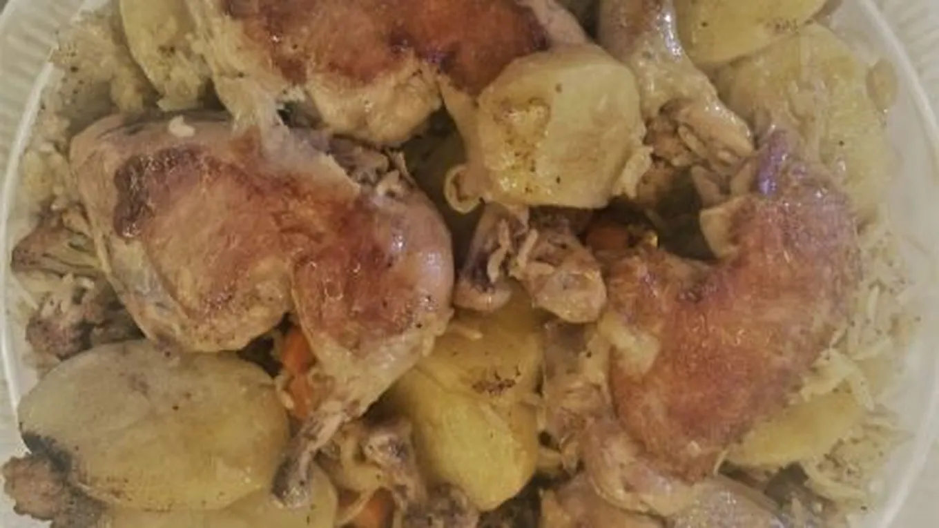 مقلوبة اللحم بالقرنبيط والباذنجان