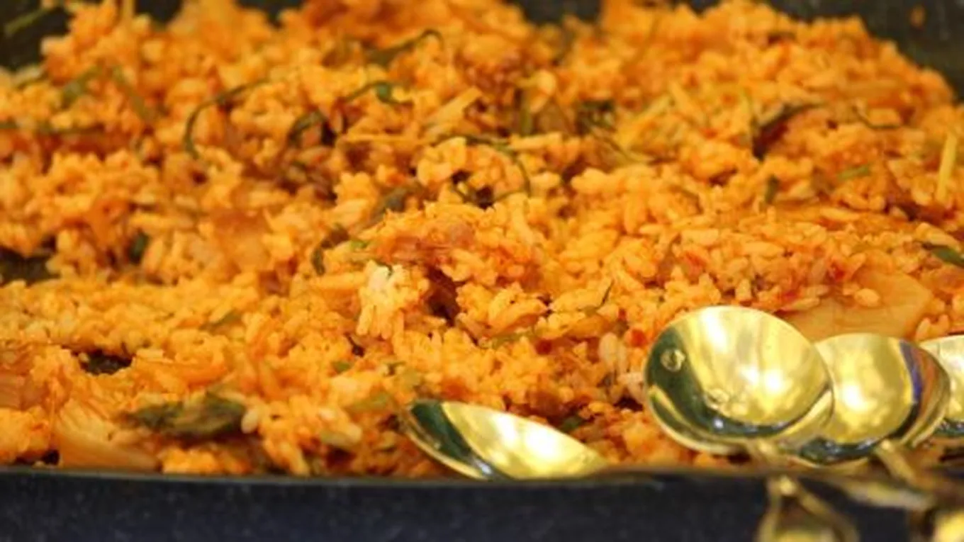 - تسخين القليل من الزيت مع الفلفل الأسود في قاع قدر عميق على نار متوسط الحرارة، ووضع مقدار ثلاث ملاعق من البصل، وتشويحه إلى أن يلين قليلاً، ثمّ يتم إضافة الأرز وتقلبه مع البصل.