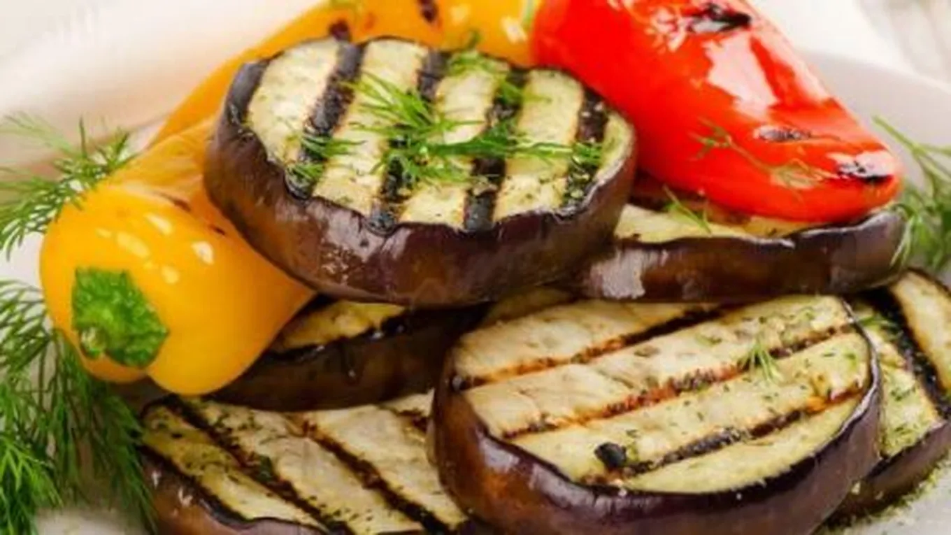 - حبة من كلّ من: الباذنجان الكبير الحجم، والبصل المتوسط الحجم، والفلفل الأخضر متوسط الحجم والطماطم كبيرة الحجم.
