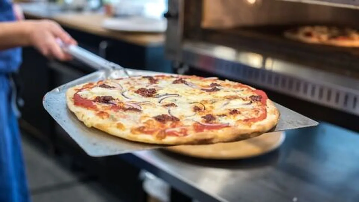 - إدخال البيتزا إلى لفرن ووضعها على الحجر مع رفع الرف ليصبح قريباً من الشواية، وخبزها لمدة عشر دقائق حتى تتحمر من السطح والقاع.