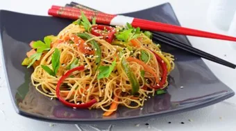 - إضافة الكزبرة والسمسم والبصل الأخضر والصلصة إلى النودلز والتقليب جيداً، ثم وضعها في طبق التقديم.