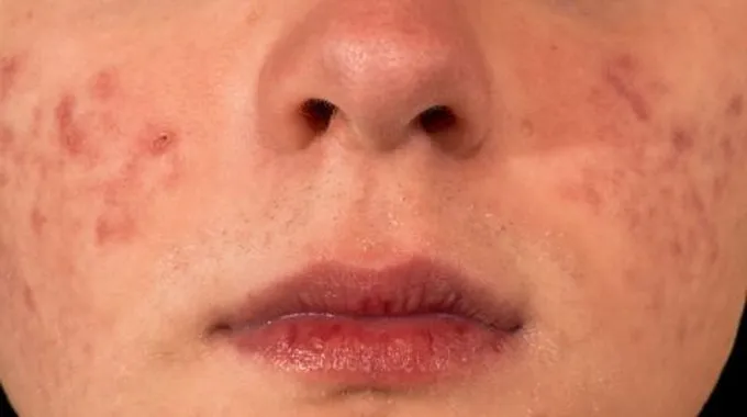 - المعاناة من جفاف وتشقّق الشفتين، واحمرارهما، وانتفاخ اللسان وظهوره بلونٍ أحمر شديد، وهو ما يُطلق عليه مصطلح لسان الفراولة (بالإنجليزية: Strawberry tongue).