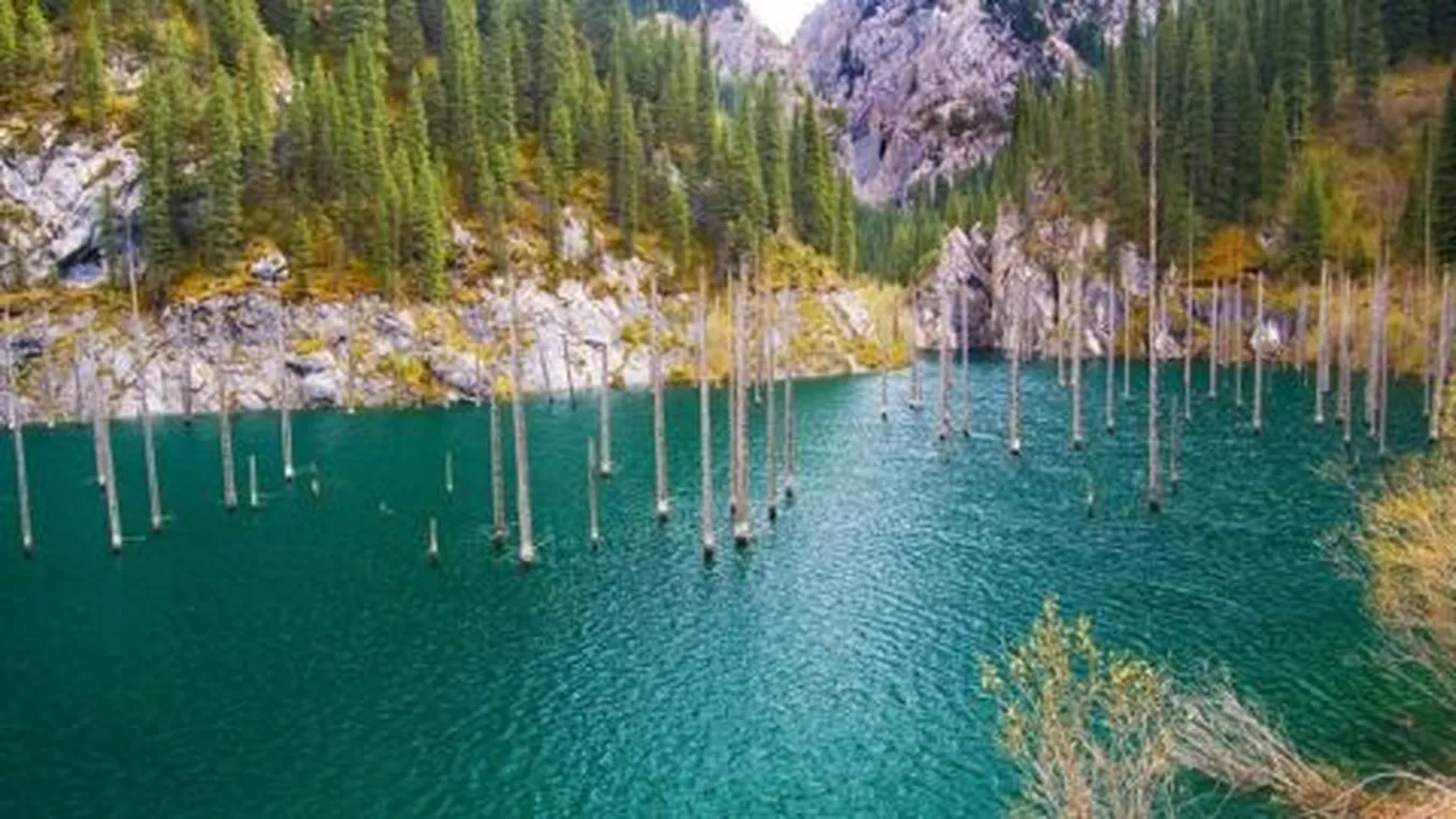 تُسمّى بُحيرة غابات كازخستان الغارقة أو بُحيرة الغابات المغمورة، تقع هذه البُحيرة في جبال تيان شان وهي أعلى سلسلة جبلية في شمالي التبت والتي تمتدّ من الشمال؛ حيث تجري فيها الأنهار الجليديّة إلى جنوب الصين، وتبعد البُحيرة مسافة مائة وتسعة وعشرين متراً من مدينة الماتي.