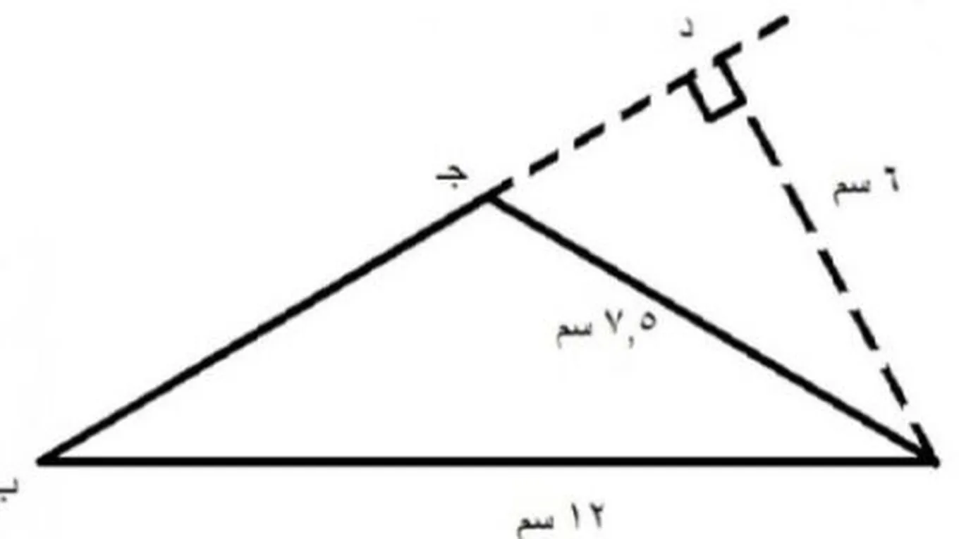 - مثال(3): مثلّث قائم الزّاوية مساحته 18سم2، وطول قاعدته 3سم، جِد ارتفاعه.[8]