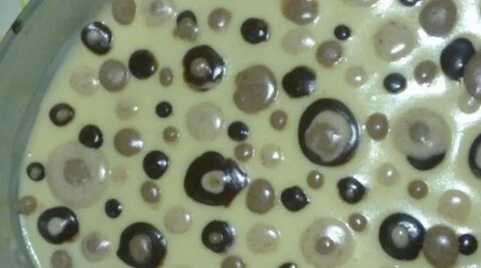 - نُحضِر الصينيّة، ونضع ملعقةً كبيرةً من المزيج الأبيض وسط الصينيّة، ثمّ نأخذ ملعقةً كبيرةً من مزيج الشّوكولاتة ونضعها داخل المزيج الأبيض، ونُكرّر هذه الخطوة حتّى ننتهي من كميّة الكيك كلّها في الوعاءَين.