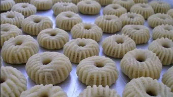 - تشكيل العجينة بقوالب الكعك بالشكل المرغوب به.