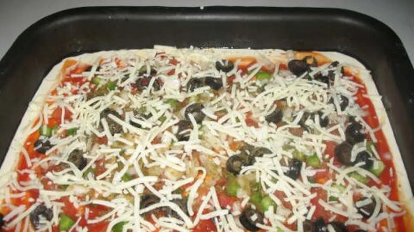 - بعد مرور الوقت اللازم للتَّخمُّر نأخذ العجين ونبدأ بفردها إلى الحجم المطلوب، ونضعها بالصينية، ويجب دهن الصينية بالزَّيت قبل وضع العجينة فيها، ثمَّ نقوم بوضع الصوص على العجينة، ونضع عليها مكونات الحشوة بشكلٍ متناسق، ثمَّ نرش عليها كلاً من الجبن والزَّعتر، ونخبزها بعد ذلك في فرنٍ ساخن لمدة ثلاثين دقيقةٍ، ونخرجها بعد ذلك وتكون جاهزةً للأكل، ويمكن تناولها باردةً، أو ساخنة.