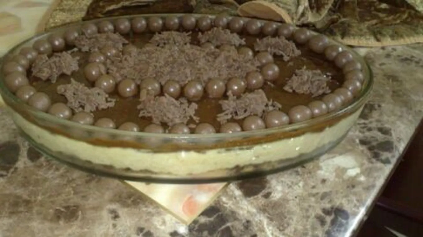 - ثم نقوم بإخراج الصينية من الثلاجة ، ونسكب عليها خليط شوكولاتة المارس، والقشطة، والكريمة بسرعة شديدة. كيفية تحضير الطبقة الرابعة لحلى عقد اللؤلؤ.
