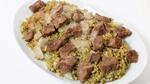 - تقديم الفخذ مع الأرز والفريكة، وتزيين الطبق بالمكسرات المحمصة.