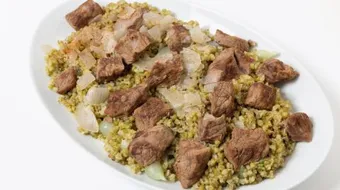 لحم بقري بالبصل المكرمل مدة التحضير 20 دقيقة مدة الطبخ 60 دقيقة عدد الحصص 2 أشخاص طريقة الطبخ تشويح وسلق وشوي وغليالمكوّنات خمس ملاعق كبيرة من زيت الزيتون.