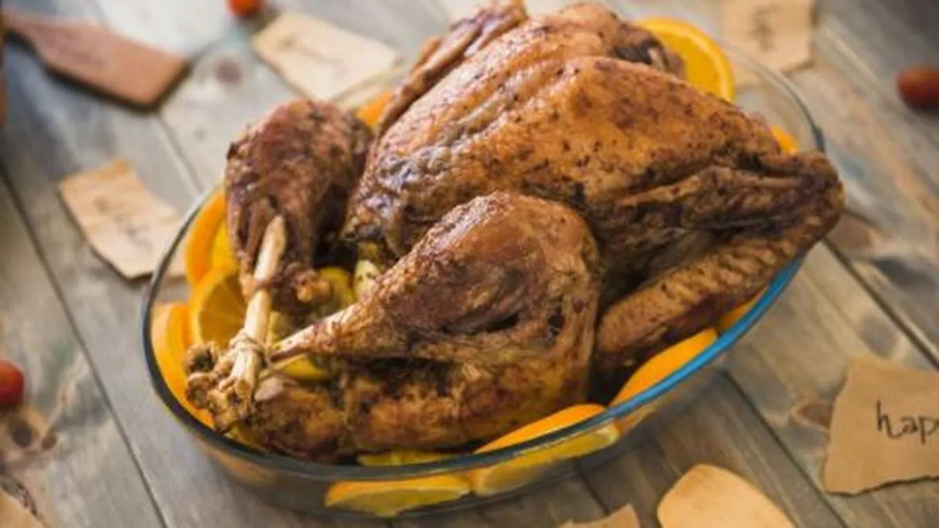 - ملء تجويف الدّجاجة بما يكفي من الأرز وغلق فتحة الدّجاجة بعود أسنان ووضعها في الكيس ثمّ إغلاقه ووضعه في طبق الفرن.