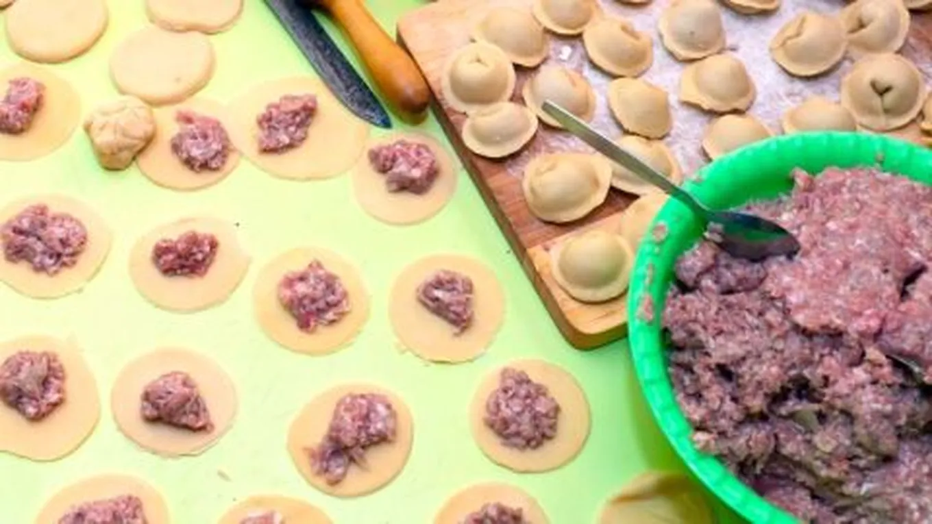 - ملء كل دائرة بملعقة صغيرة من الحشوة في منتصفها، ثمَّ ثنيها بشكل نصف دائرة لإغلاق أطرافها ولف الطرفين ولصقهم ببعض ليصبح لدينا قبعة صغيرة.