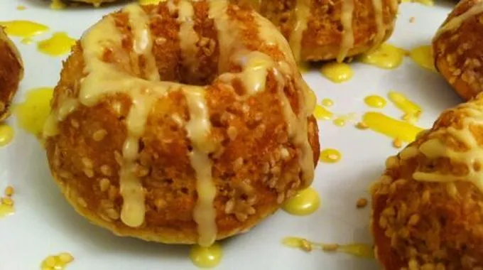 - جهّزي قوالب كيك صغيرة أو كبيرة مفتوحة من الوسط وادهنيها بالسمن ورشّيها بالسمسم.
