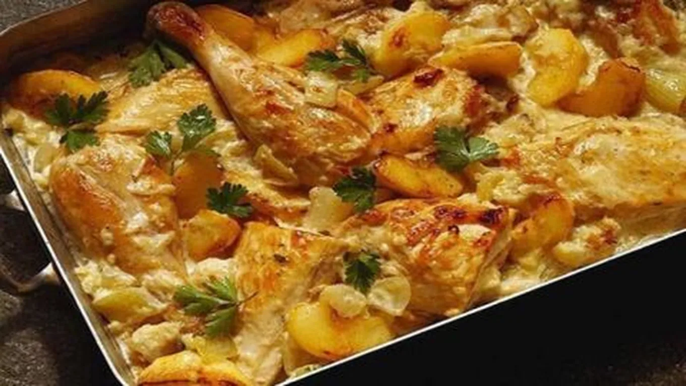 صينيّة البطاطس بالدجاج بزيت الزيتون