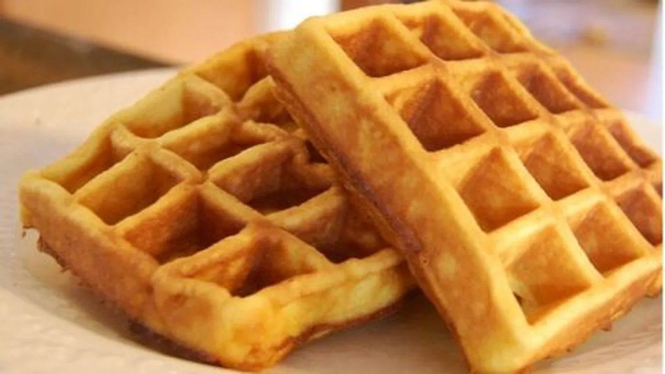 كوبان من الطّحين الأبيض متعدد الاستعمالات.ملعقة كبيرة من البايكينغ باودر.حبّتان من البيض مفصول البياض عن الصفار.نصف ملعقة صغيرة من الملح.بياض من حبّتيْ بيض.ربع كوب من السكر.ملعقة كبيرة ونصف من خلاصة الفانيلا.ثمانية ملاعق كبيرة من الزبدة الذائبة.قطر دافئ للتقديم.