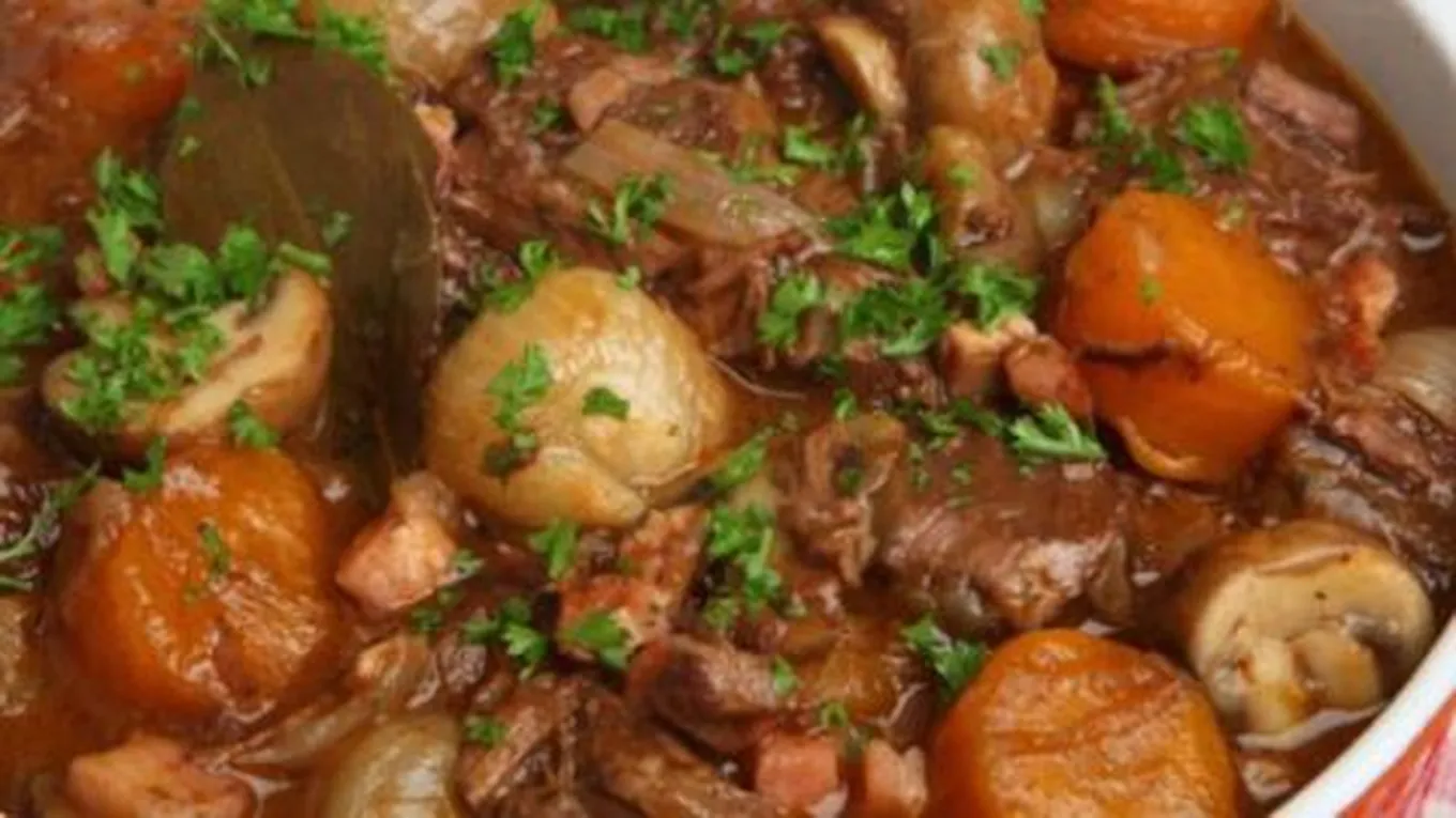 - نضيف الماء ونصف مكعَّب مرق اللحم والكميَّة المتبقيَّة من الملح والقرفة المطحونة والفلفل الأسود المطحون، ونقلّب الخليط جيّدًا، ونتركه على نار متوسّطة مدة (45-60) دقيقة.