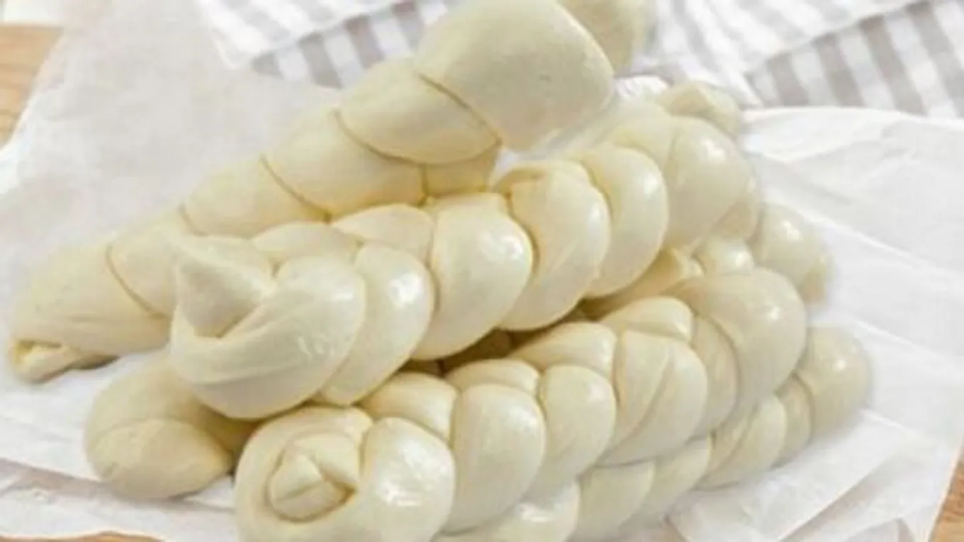 - نفرغ عجينة الجبنة على سطح بارد، نُقلّبها حتى تبرد قليلاً، ثم نمسكها بكلتا يدينا، ونمطّها بالطول لأكبر حد، ثم نلمها من جديد بباطن اليدين، ونعاود سحبها بشكل طولي، وبحركة سريعة، حتى تتشكل لدينا شعيرات رفيعة من الجبن.