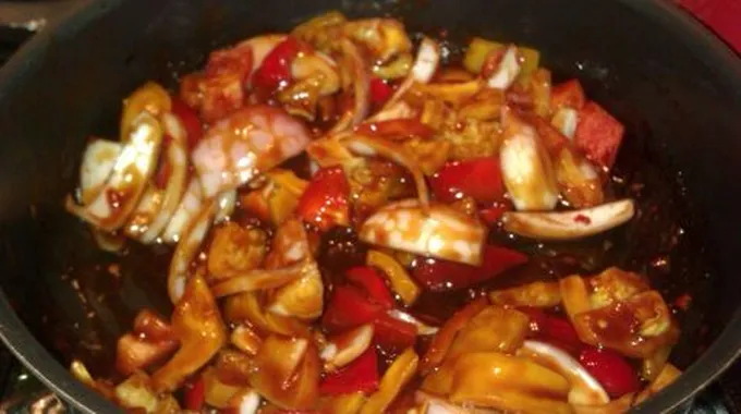 - نضيف الكتشاب، وصلصة الصويا، ونحرّك مجدداً، ونضع الصلصة الحلوة جانباً.
