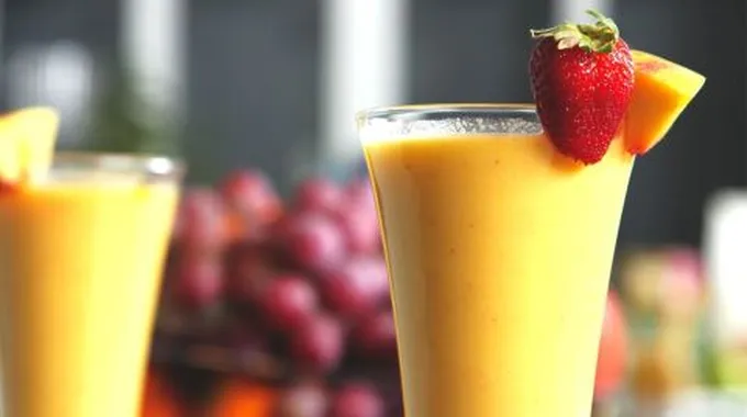 نضع المكوّنات في إبريق الخلاط، ونشغل حتى نحصل على العصير، ونضعه في أكواب التقديم ونقدّمه.