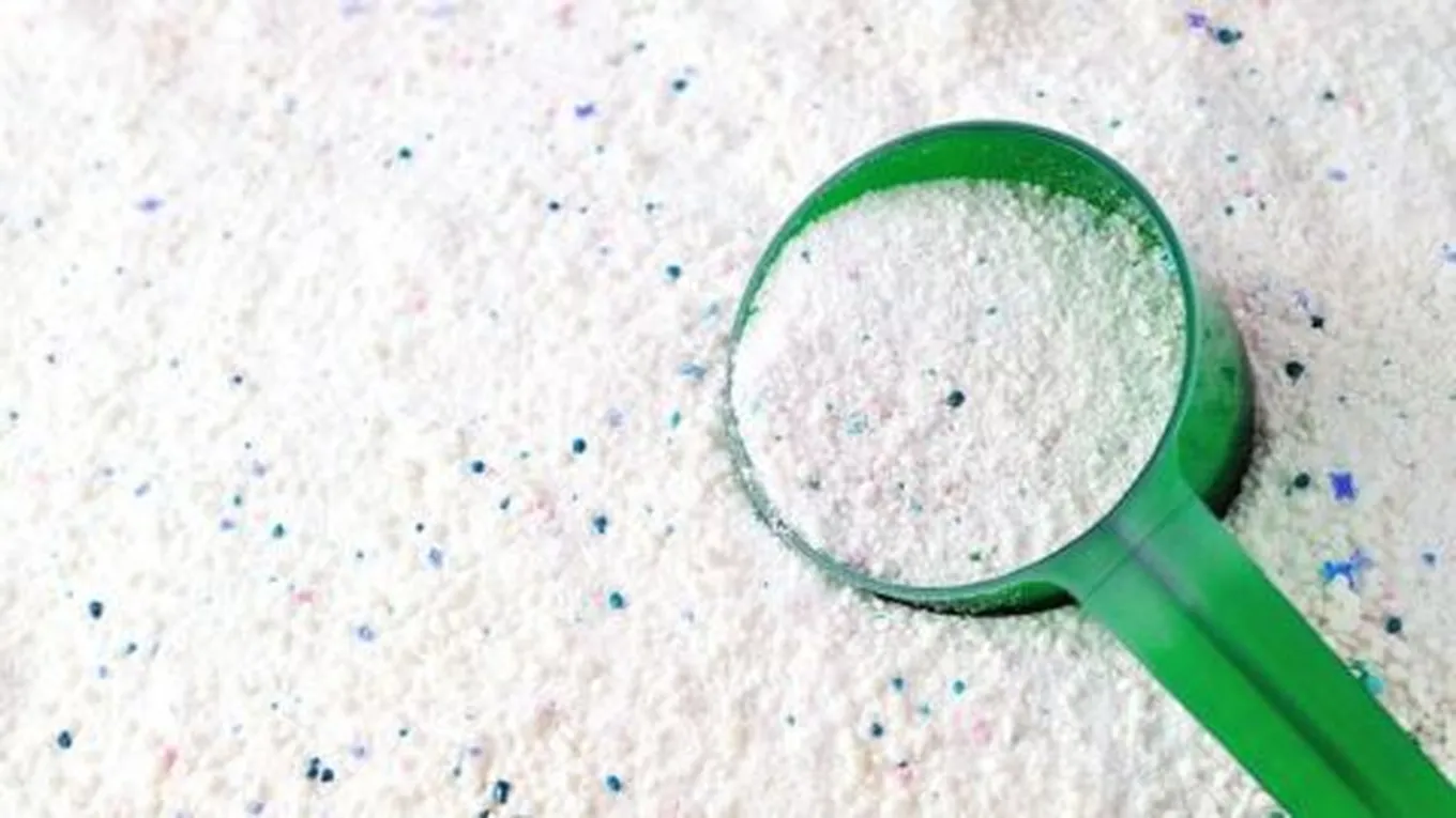 - ضعي كمية من المسحوق في الغسالة لتنظيف الملابس.