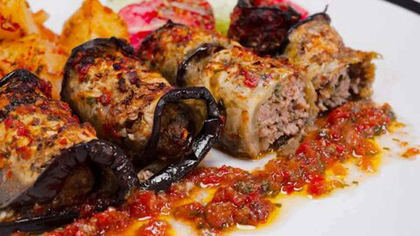 - نضع في الصينية زيت الزيتون، وبصل، وبندورة معلبة، وملح، ثمّ نضيف لفائف الباذنجان، ونُدخلها الفرن على درجة حرارة متوسطة، ونتركها لمدة ساعة إلا ربعاً على الأقل حتى تنضج.