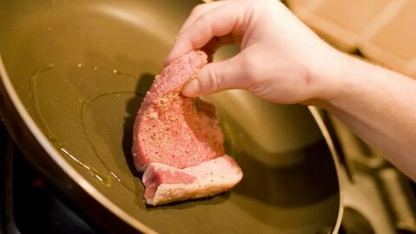 - نضع الزيت في وعاء مناسب، ونسخّنه لمدّة دقيقة واحدة، ثم نضيف اللحم المفروم، ونحرّكه بواسطة ملعقة خشبيّة لمدّة ثلاث دقائق كي تجف قليلاً، ثم نضيف البصل ونحرّكه لمدّة دقيقتين.