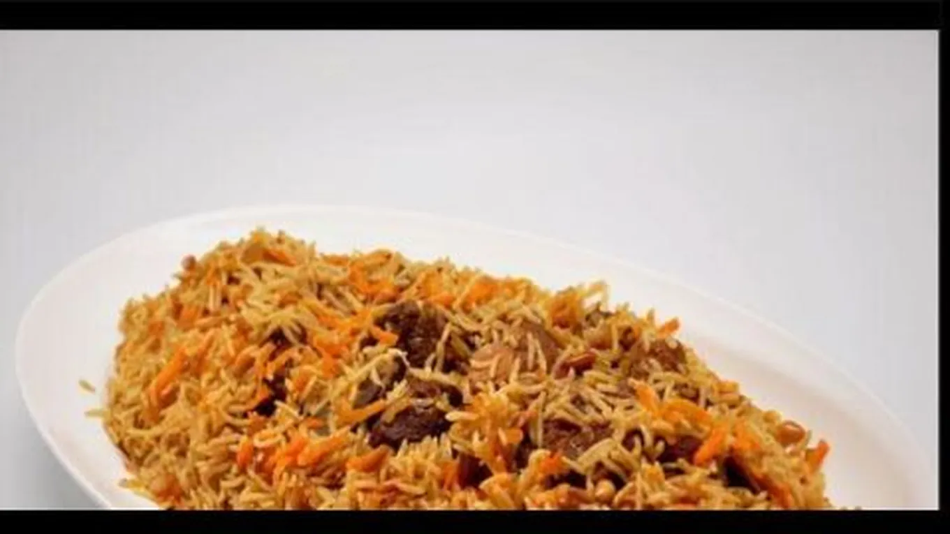 - نقلّب طبقات الأرز في طبق التقديم، ونزينه بالبصل والبطاطا ونقدمه مع السلطات.