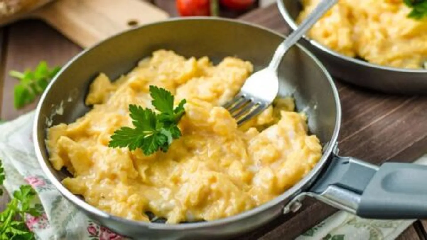 - نترك البيض في المقلاة لعدة دقائق مع التحريك المستمر حتى ينضج، ويتماسك جيّداً.