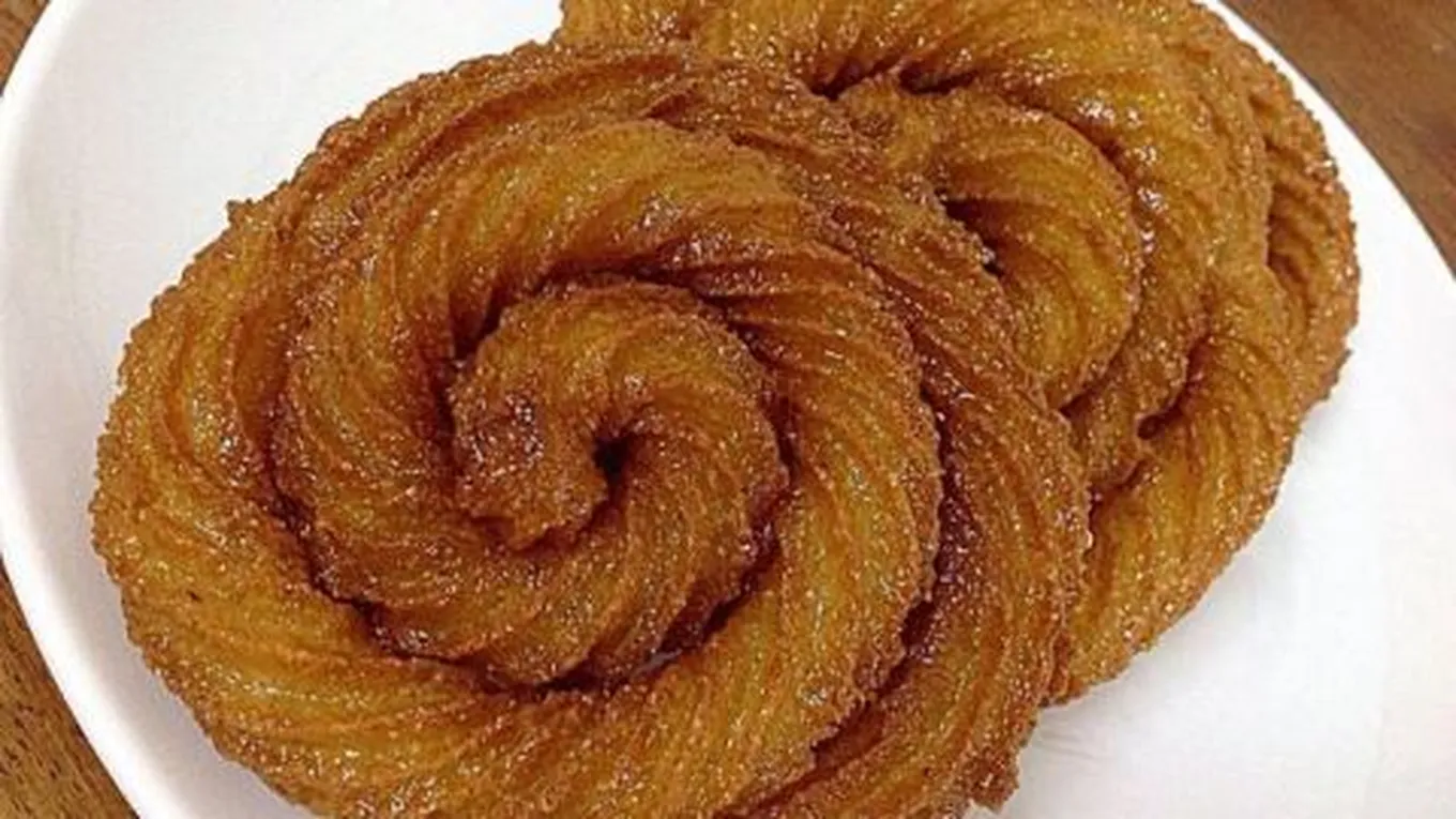 - نضع العجين في كيس التزيين الخاص بالحلويات وباستخدام رأس غير مزخرف، ومن الممكن استخدام كيس نايلون نثقبه من الطرف، نصب الخليط في الزيت على شكل شبكة وخطوط متداخلة ونتركها في الزيت حتى تصبح ذهبية اللون مائلة للبني، ثم نخرجها من الزيت.