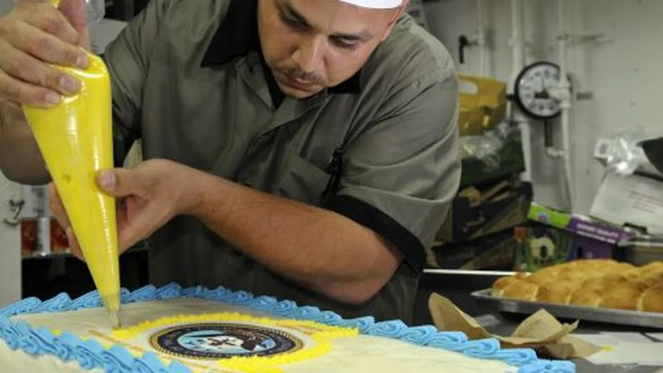 نقوم بطباعة صورة كنا قد اخترناها من قبل ثم نضع ورقة زبدة شفافة فوقها، ونستخدم كريمة الزبدة ونرسم الصورة بالكريمة، وبعد ذلك نضعها في الفريزر ما يقارب الساعة ثم نخرجها ونضعها على التورتة ونخرج ورق الزبدة بهدوء.