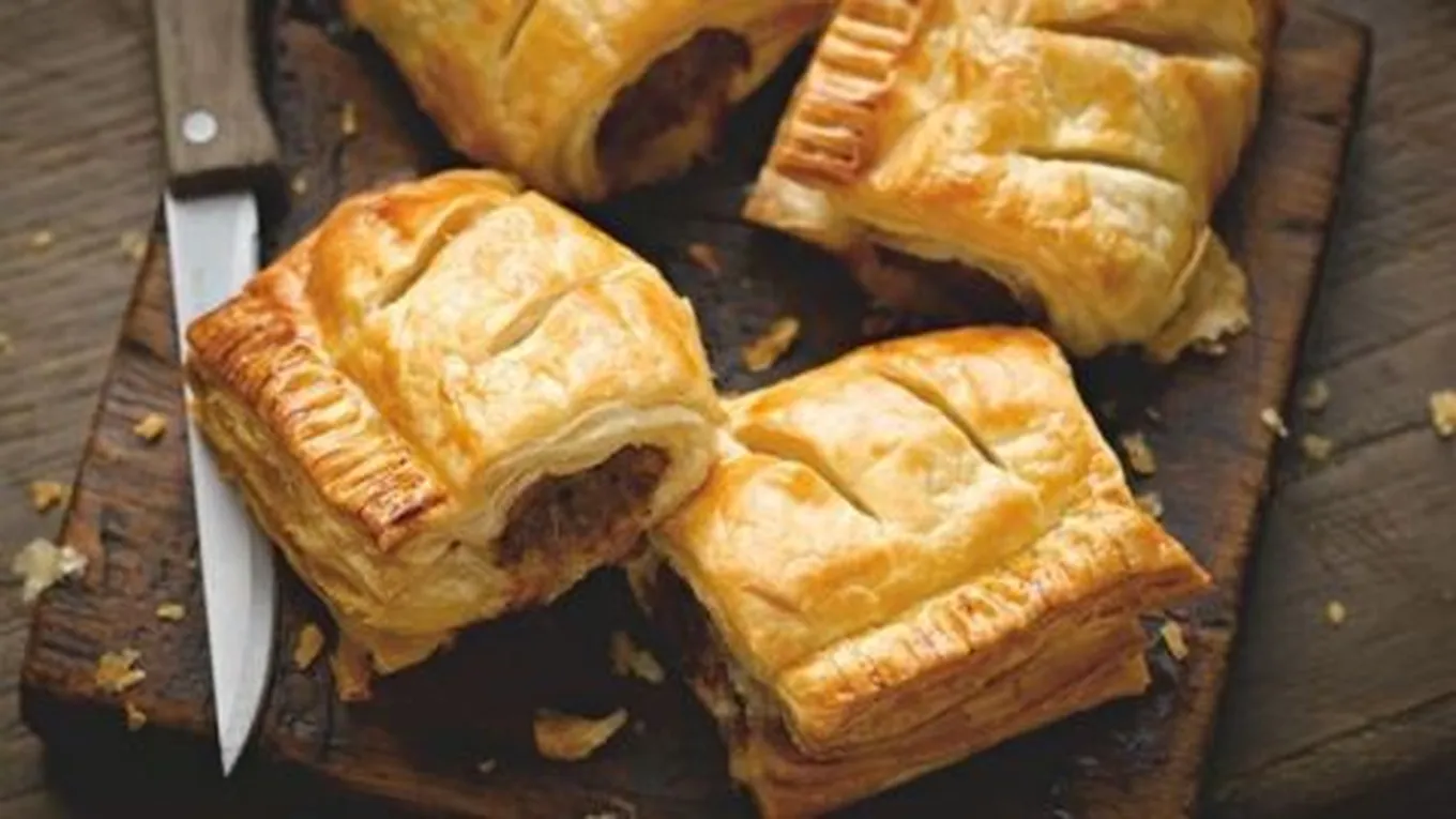 - نترك عجينة البف باستري حتى تبرد، ثم نقطعها إلى نصفين.