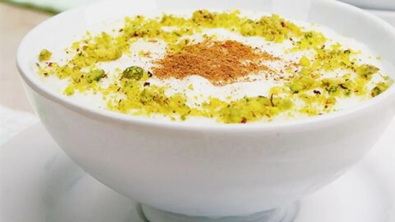 - نسكب المزيج بزبادي وصحون خاصّة بالتقديم، ونزيّن هذه الصحون بالفستق الحلبي والزبيب، ونتركها تبرد لتكون جاهزةً للأكل.