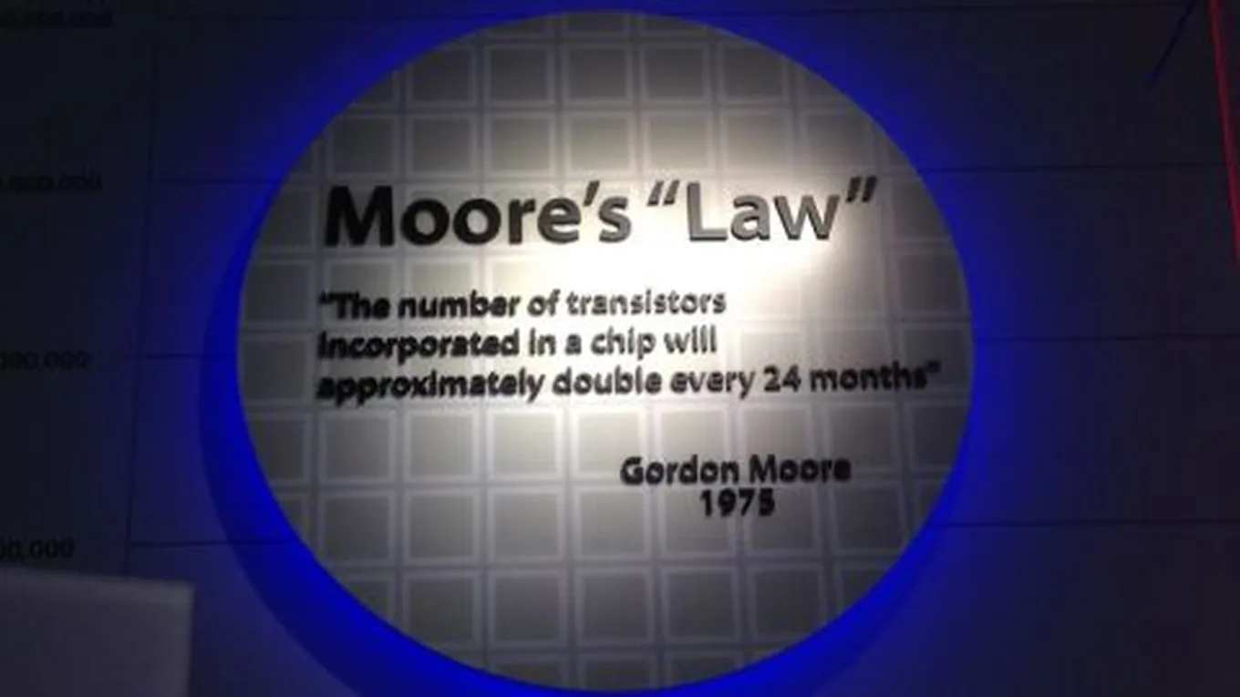 يعبر قانون مور عن الملاحظة التي ذكرها غوردون مور وهو مؤسس شركة إنتل في عام 1956م، حيث تذكر هذه الملاحظة أنّ أعداد الترانزستور(Transistor) الموجودة في كل بوصة مربّعة ترتفع بشكلٍ مضاعف منذ اختراعها، حيث إنّ العدد المُستخدم في كل بوصة مربّعة يتضاعف كل سنة منذ ذلك الوقت، ولذلك توقّع مور باستمرار هذه الزّيادة في المستقبل القادم.[1]، حيث إنّ الترانزستور(Transistor) هو جهاز يستخدم في تنظيم الجهد والتيار الكهربائيّ المار في الدّارة؛ حيث تشبه طريقة عمله الباب الخاص بالإشارات الإلكترونيّة، كما أنّه يتكوّن من ثلاث طبقات من أشباه المُوصلات والتي تحمل تياراً كهربائيّاً.[2]