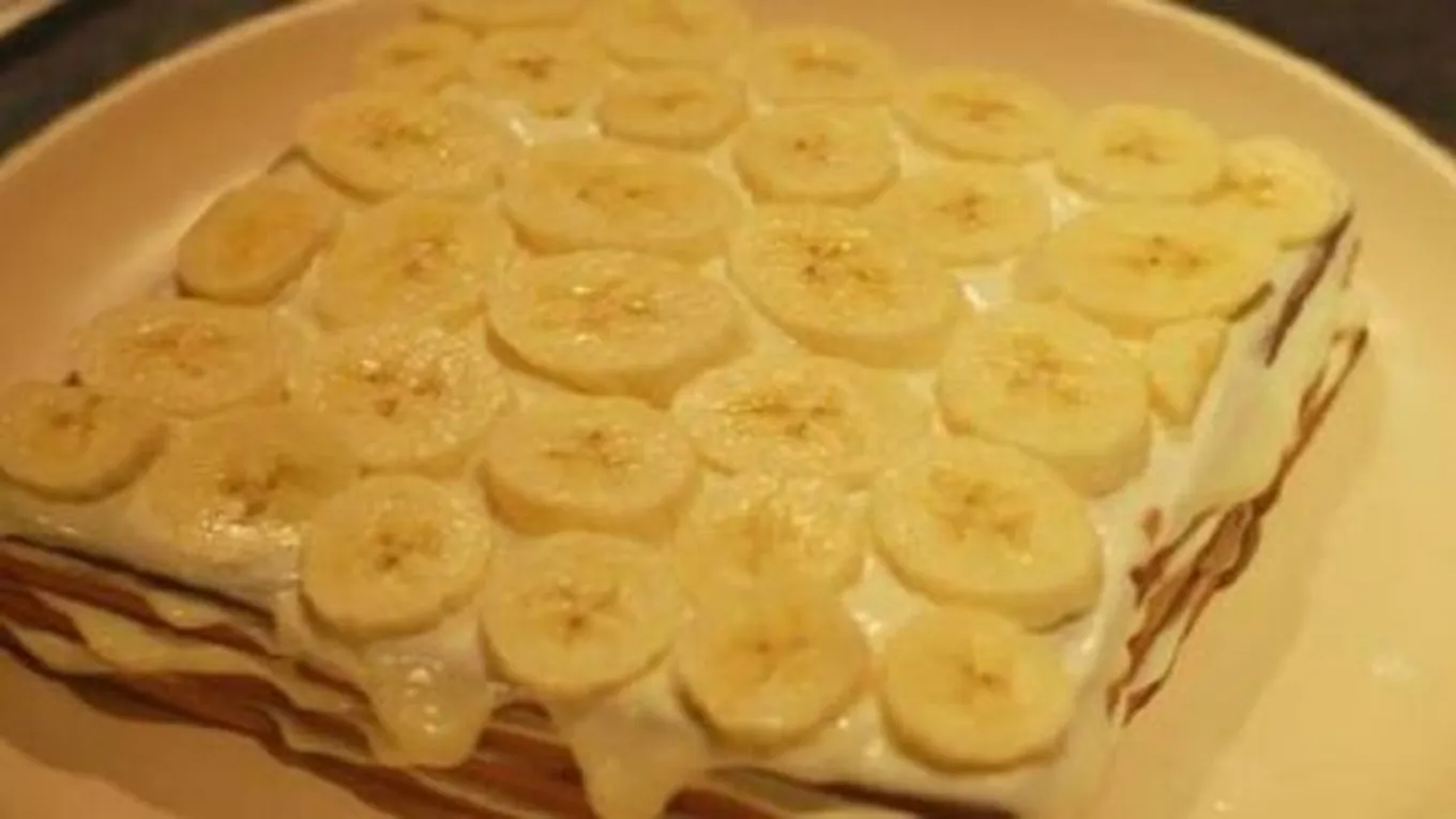 - بعد أن يتماسك الخليط نضعه على النار، وعندما يبدأ في الغليان نسكبه على طبقة البسكويت.