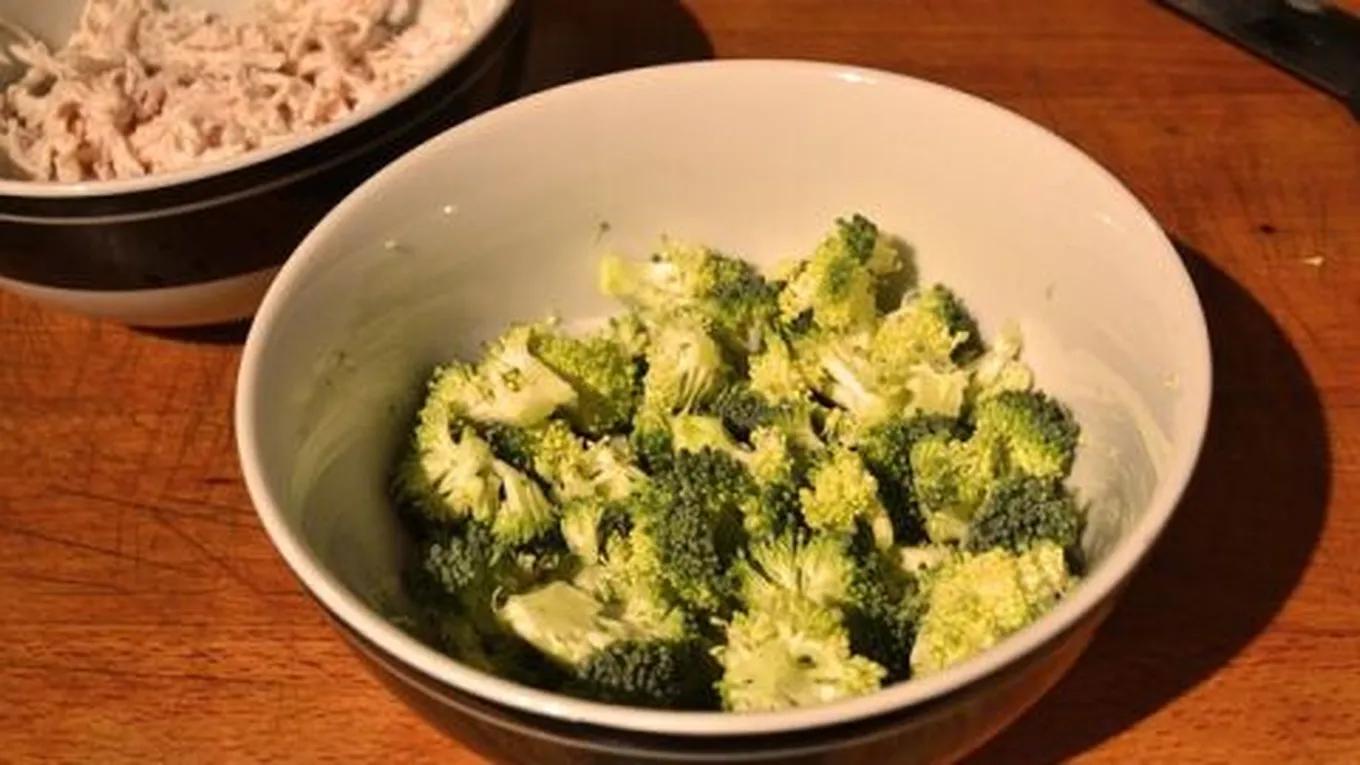 - إضافة البروكولي، والملح، والشطّة، والخل، وتقليب الخليط لمدّة خمس دقائق.