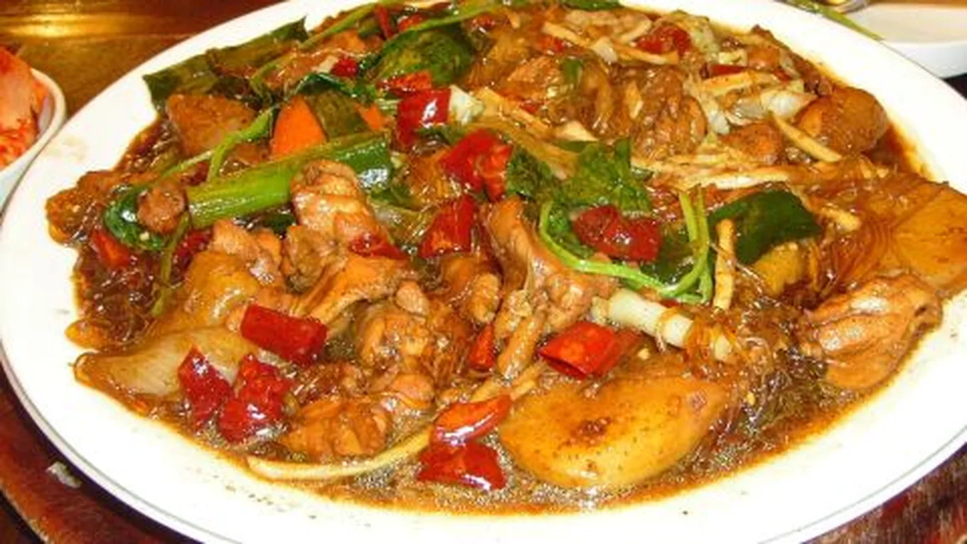 - إضافة الدجاج المحمر وتقليبه مع الخليط.