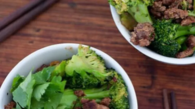 يسخّن الزيت في مقلاة، ثمّ تُوضع قطع اللّحم، ويقلّب إلى أن يتغير لون اللّحم، ثُمّ يُضاف كل من ربّ البندورة، وصوص صويا، والخلّ، وبودرة الثوم، ويُترك الخليط على النار حتّى يتمّ الغليان، وبعد ذلك تُضاف قطع البروكلي، ويُترك على نار هادئة لمدة 30دقيقة، ثمّ يقدّم بسكبه على سطح طبق أرزّ محضّر سابقاً.