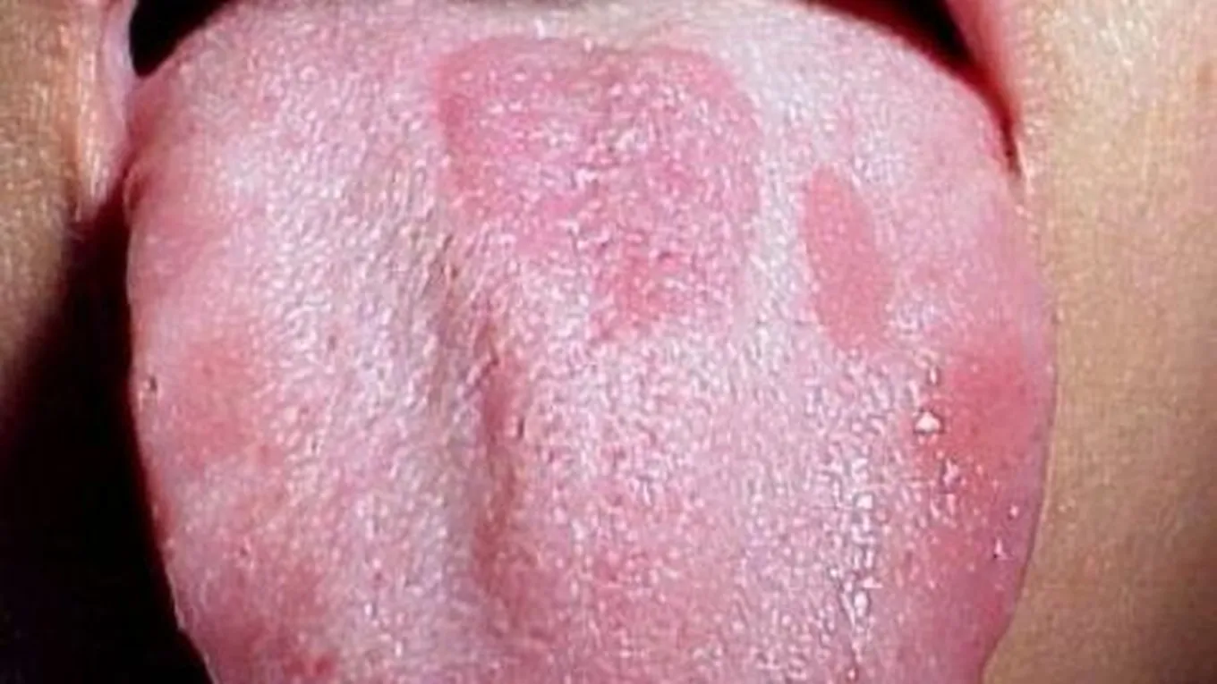 - ظهور طفح أبيض في بطانة الفم وعلى اللسان.