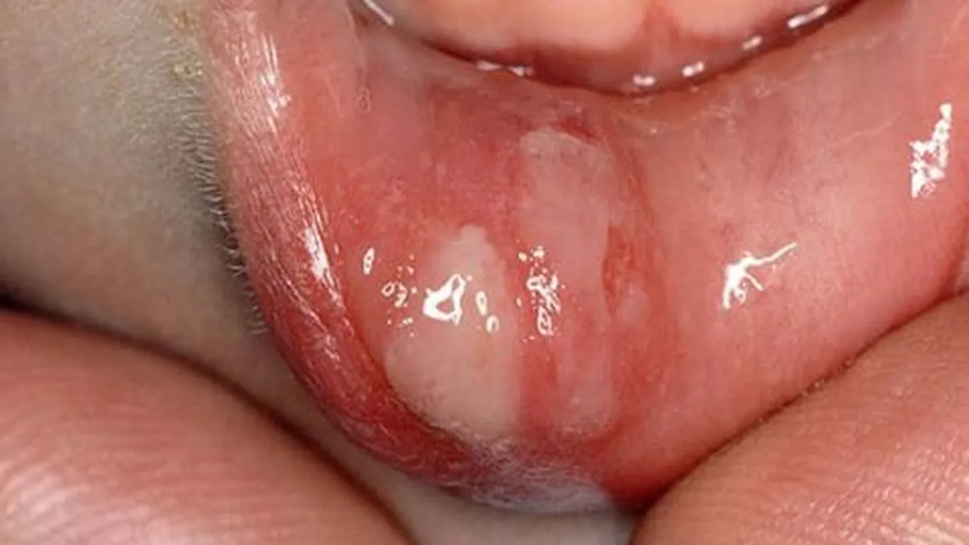 - ظهور بقع بيضاء في جوانب الفم، وعلى اللسان.