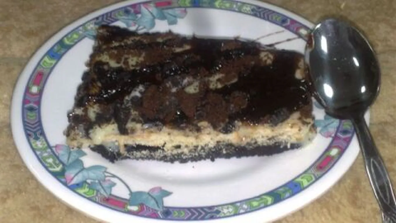 - نفرد الكميّة المتبقية من الكريمة فوق طبقة البسكويت الأوريو، ونزيّنها ببسكويت أوريو مطحون خشناً، ثمّ نضعها في الثلاجة ونتركها لأربع ساعات على الأقل.