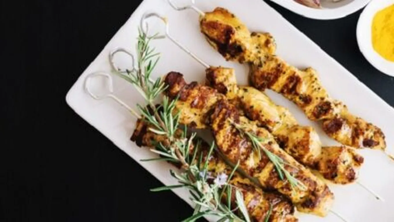 - غرز قطع الدجاج بالأسياخ الخشبيّة، ورصّها جيدًا ثمَّ مسحها بالقليل من الزيت.
