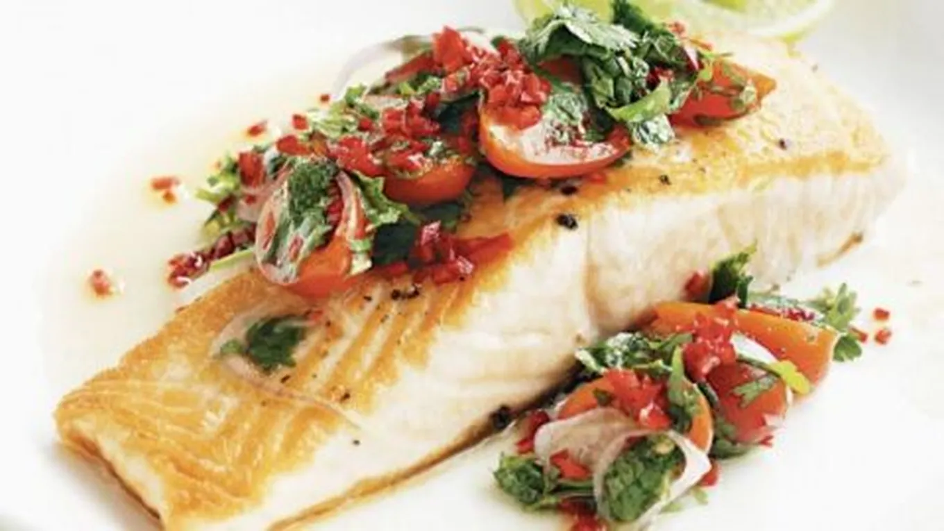 - نقدم طبق من سمك الفيليه الساخن ونزينه بالقليل من البقدونس المفروم.