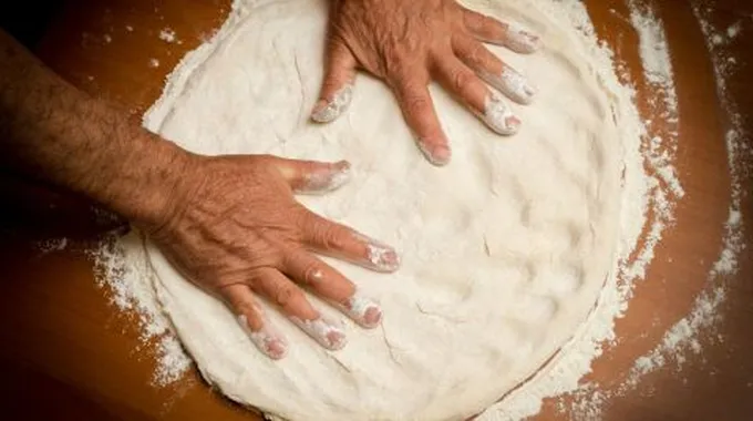 - نضيف كميّة الماء الدافئ ولكن بالتدريج؛ حيث نضيف كميّةً قليلة ونعجن، ثمّ نضيف الكميّة الأخرى ونتابع العجن حتّى نحصل على عجينةٍ متماسكة ومتجانسة، لكن قد لا نحتاج لكميّة الماء جميعها؛ إذ يختلف نوع الطحين في امتصاصه للماء من مكانٍ إلى آخر.